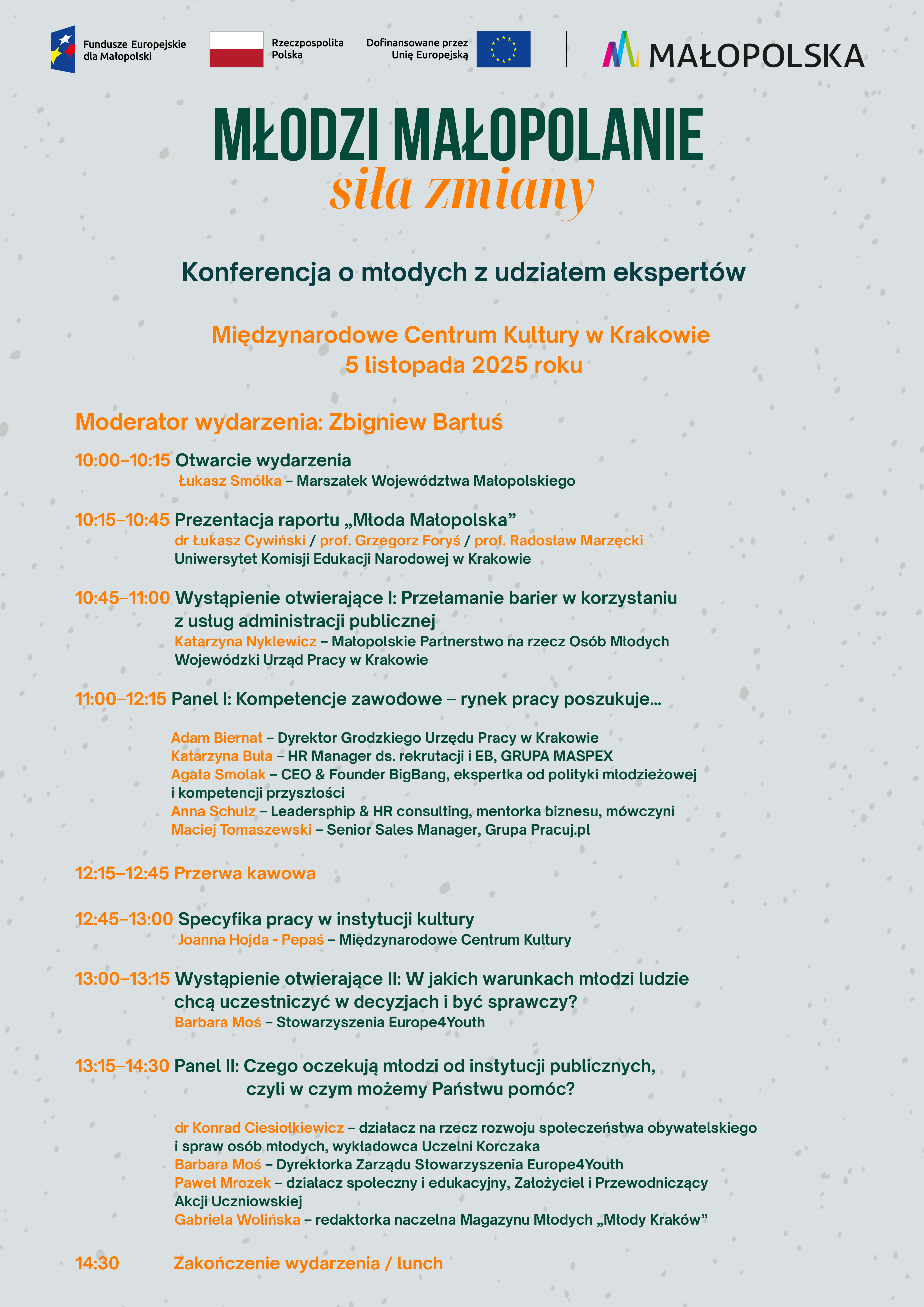 Konferencja jest współfinansowana ze środków Unii Europejskiej z programu Fundusze Europejskie dla Małopolski 2021–2027.